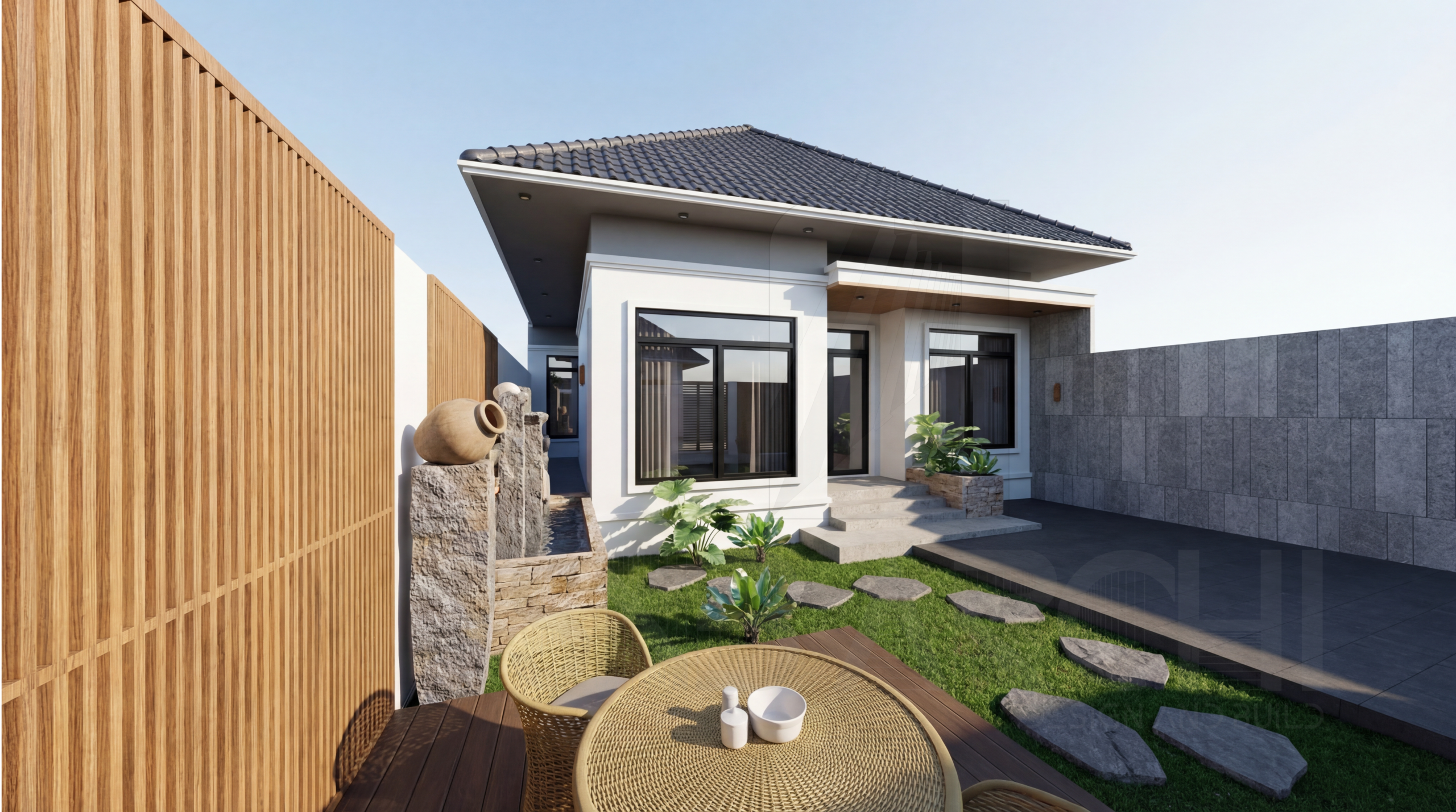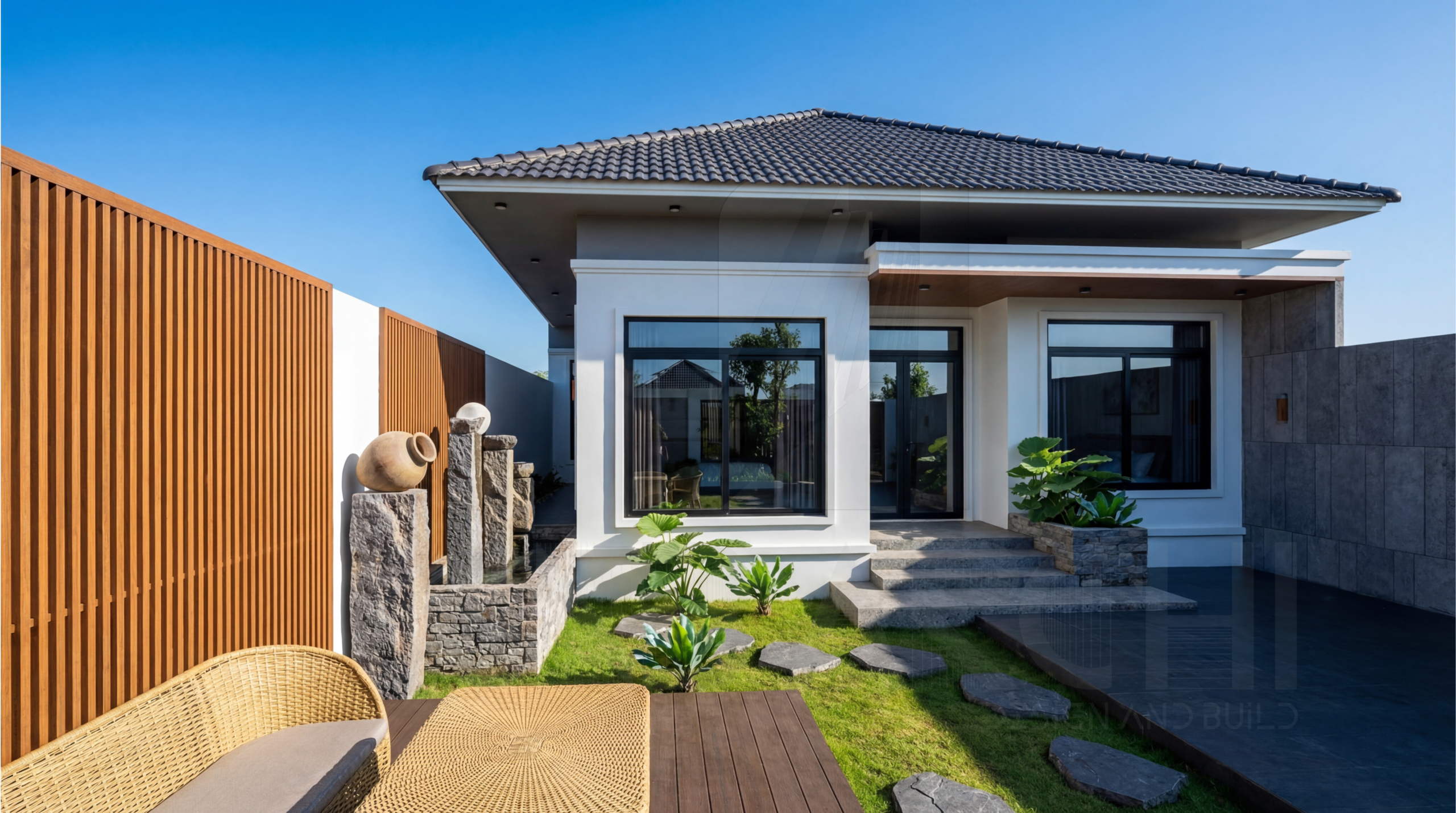 Khám phá vẻ đẹp của mẫu nhà mái Nhật 1 tầng hiện đại giữa không gian xanh