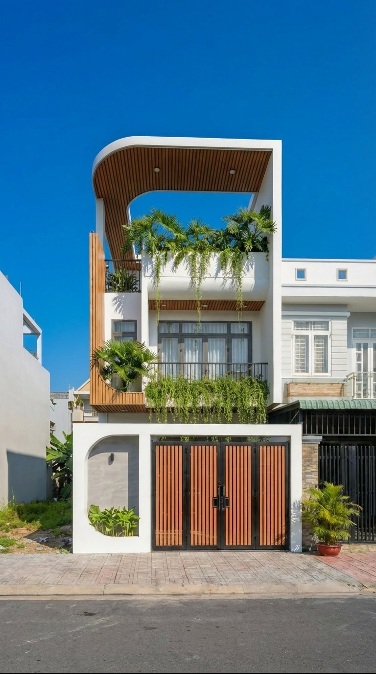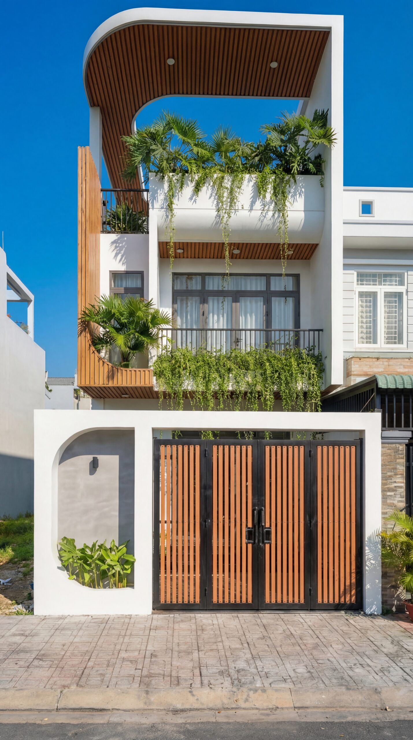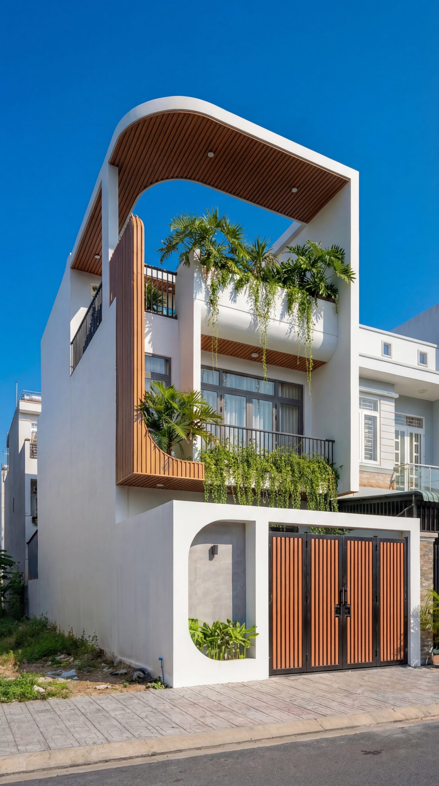 Mẫu Nhà Phố 3 Tầng Hiện Đại Với Đường Cong Tinh Tế