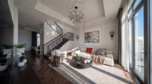 Phòng khách tân cổ điển hiện đại sang trọng và tràn ngập ánh sáng