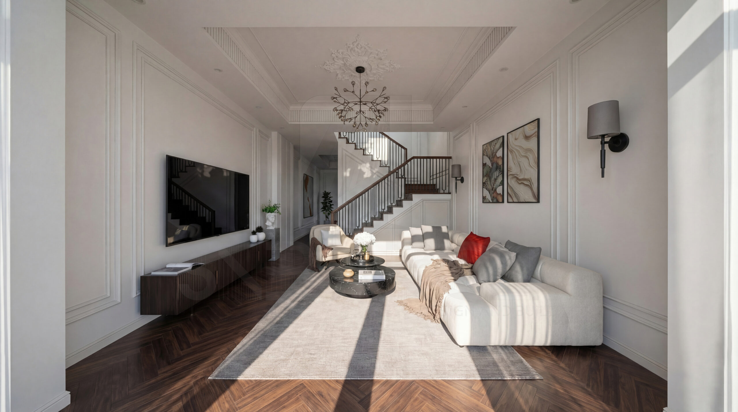 Mẫu nội thất tân cổ điển hiện đại sang trọng cho nhà phố 2 tầng – Không gian sống đẳng cấp và tinh tế