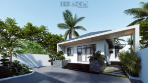 4.Tổng thể kết nối hài hòa mẫu nhà vườn mái nhật 1 tầng 8x16m2.
