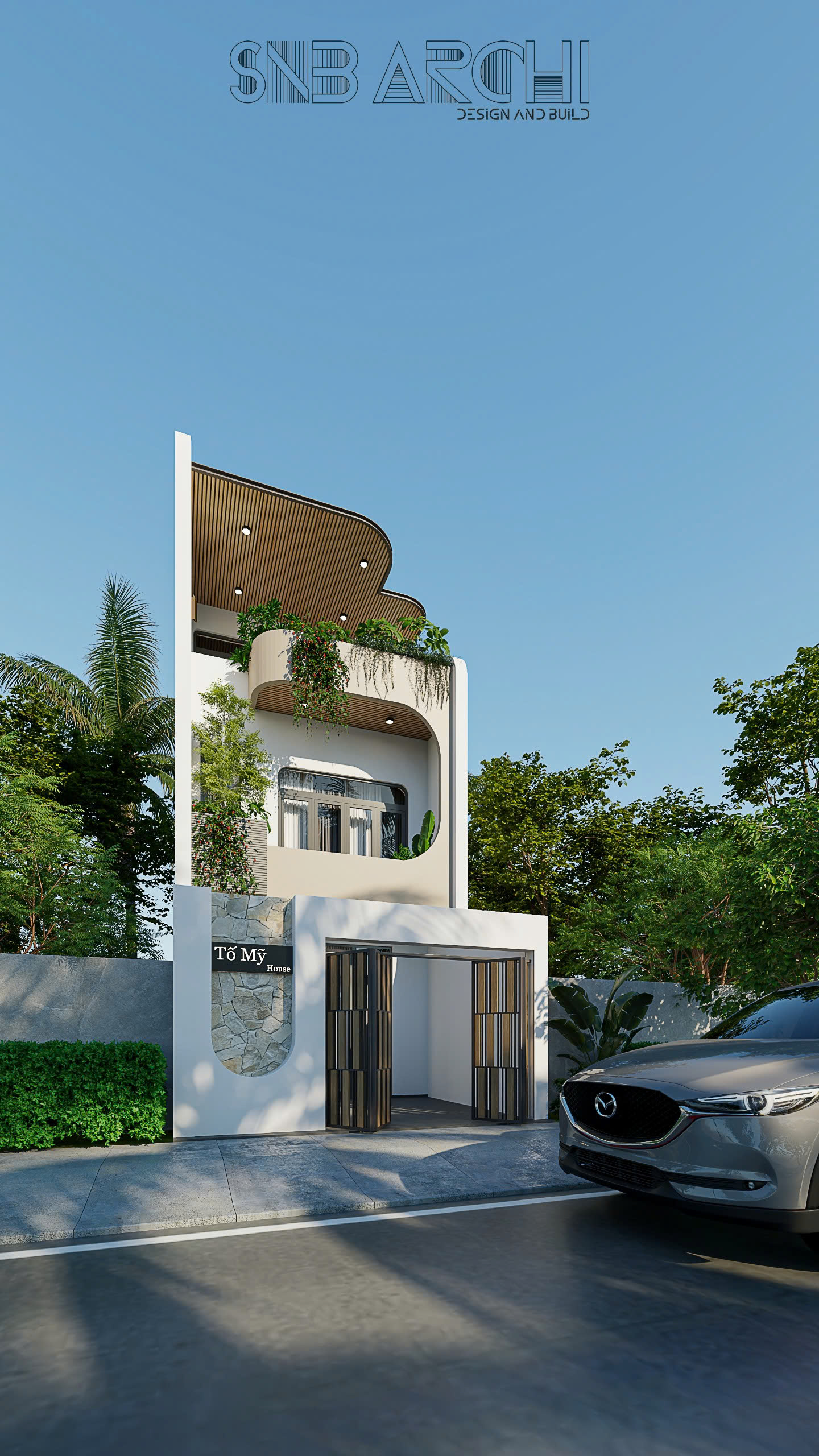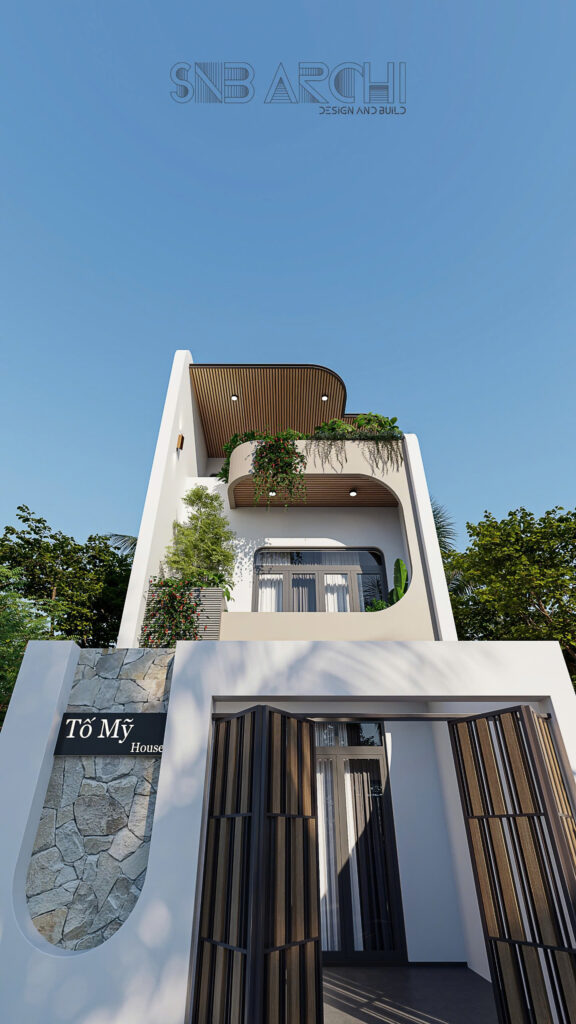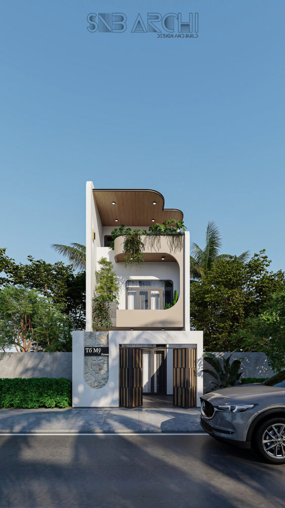 Mẫu nhà phố 5x16m2 Tố Mỹ House với kiến trúc sáng tạo , hình khối cong độc đáo cùng không gian xanh hài hòa, mang đến không gian sống tiện nghi, ấm cúng và thoáng đãng — lý tưởng cho những bước đầu xây dựng tổ ấm hạnh phúc giữa lòng đô thị năng động.