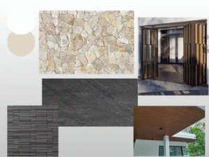 Tạo điểm nhấn cho mặt tiền ngôi nhà, các KTS đã tinh tế sử dụng đá tự nhiên trang trí phần bảng tên nhà , không chỉ tạo được điểm nhấn thu hút người qua đường  mà với các vân đá nhẹ nhàng, tạo cảm giác sang trọng nhưng không kém phần gần gũi với thiên nhiên.