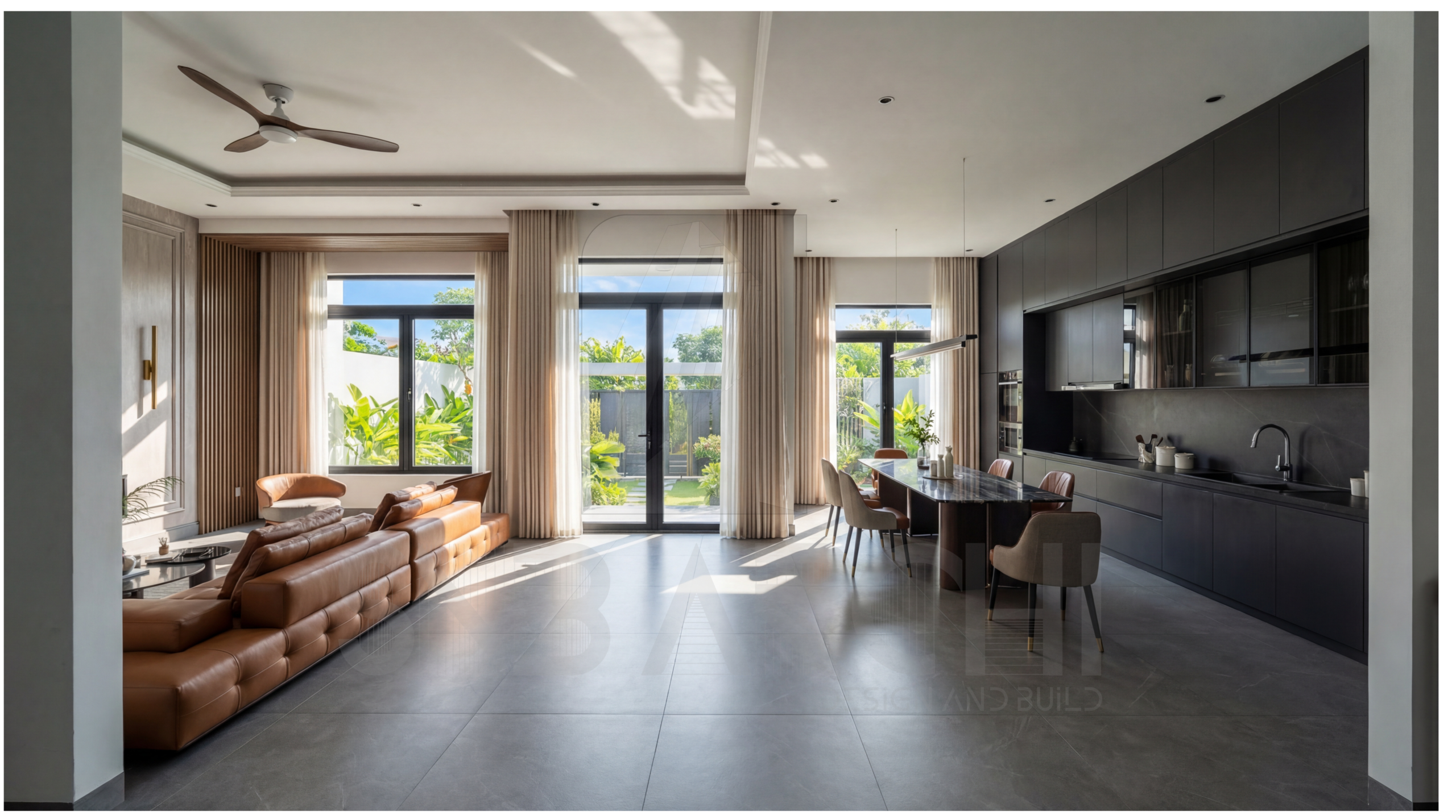 Mẫu thiết kế dưới đây là minh chứng rõ nét cho vẻ đẹp của nội thất hiện đại sang trọng, với sự kết hợp hài hòa giữa vật liệu cao cấp, màu sắc trung tính và cách bố trí không gian khoa học.