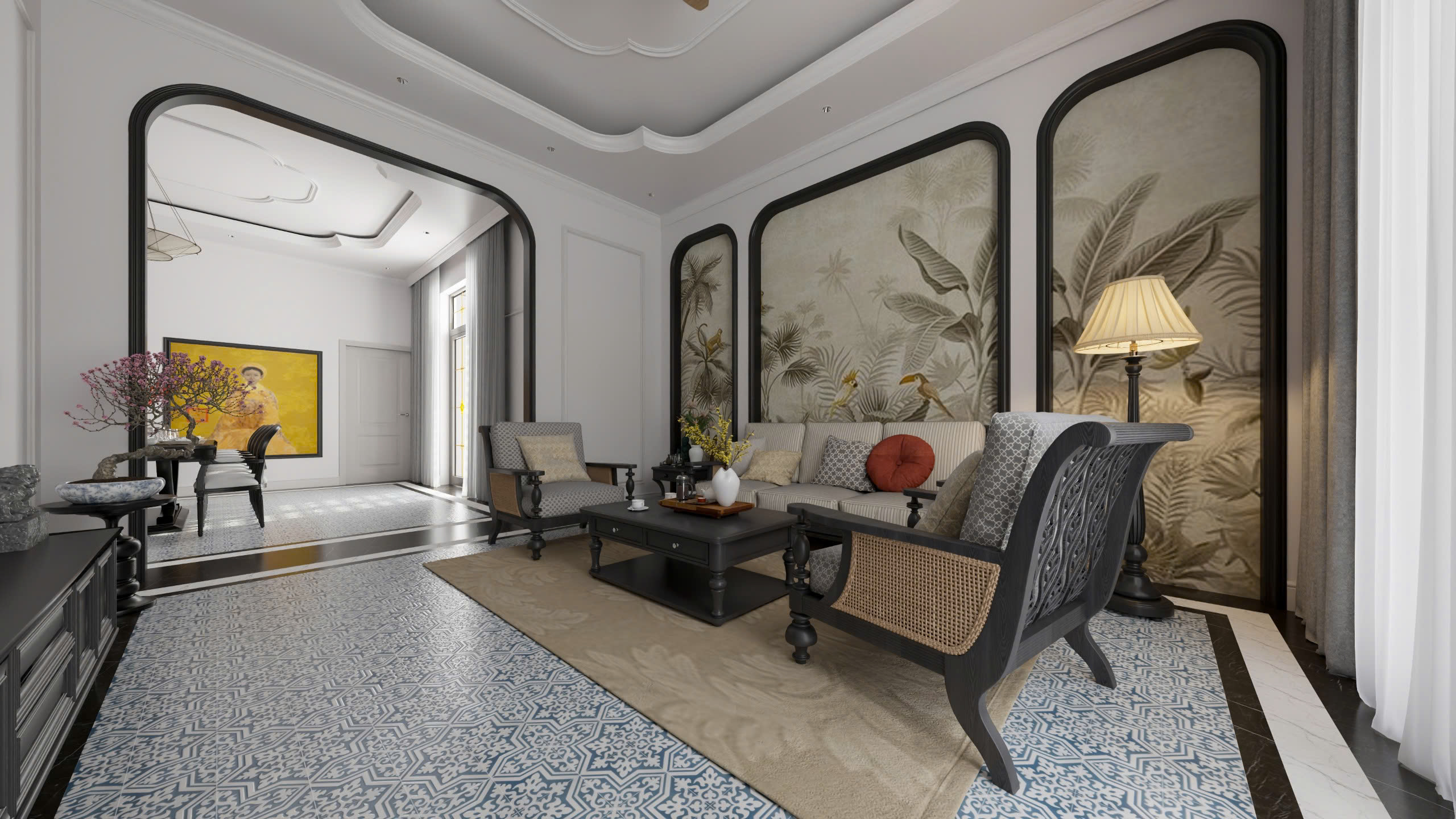 2. Phòng khách – Giao thoa giữa cổ điển và hiện đại của phong cách thiết kế nội thất Indochine.